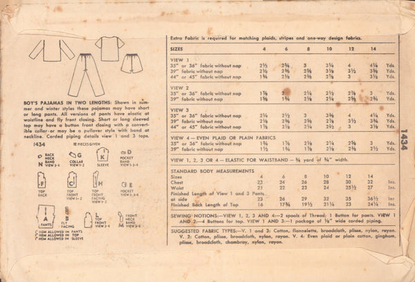 Simplicity 1434 Sewing Pattern, Boys' Pajamas, Cut, Complete