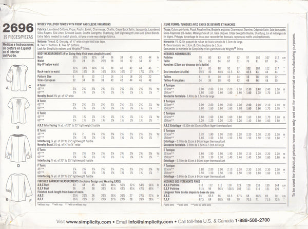 Simplicity 2696 Sewing Pattern, Women's Tunics, Size 6-14, Uncut Factory Folded
