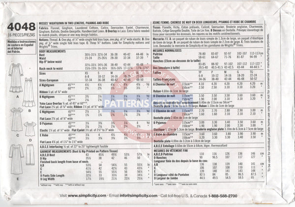 Nightgown in two lengths, pajamas and robe.