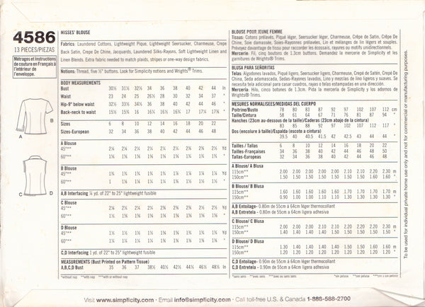 Simplicity 4586 Sewing Pattern, Misses' Blouse, Size 6-12, Uncut, Factory Folded