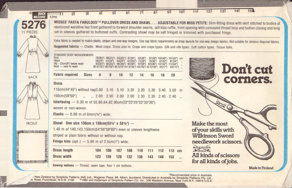 Simplicity 5276 Sewing Pattern, Dress and Shawl, Size 16-18-20, Cut, Complete