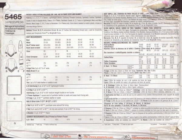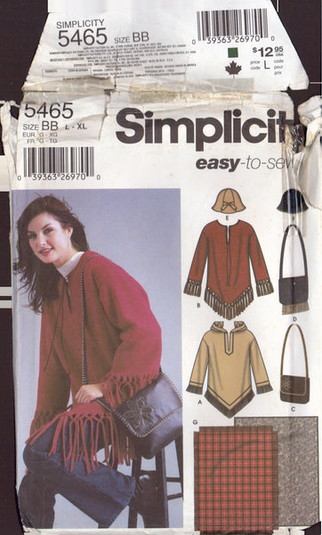 Simplicity 5465 Sewing Pattern, Misses' Pullover Top, Bag and Hat, Size L-XL, Uncut, Factory Folded