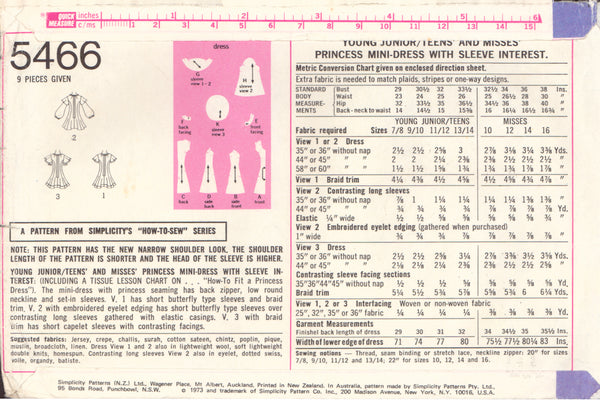Simplicity 5466 Sewing Pattern, Misses' Princess Mini-Dress, Size 10, Cut, Complete