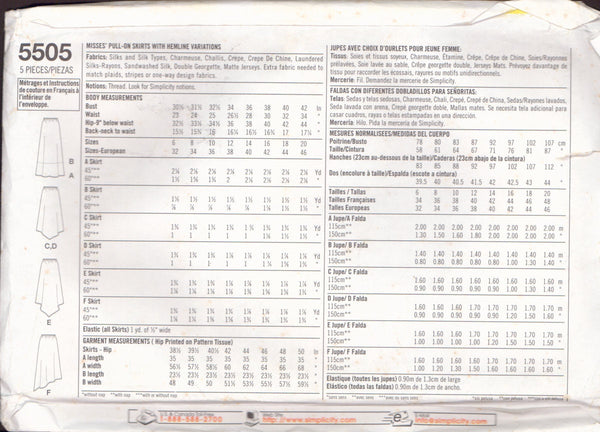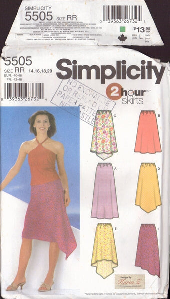 Simplicity 5505 Sewing Pattern, Skirts, Size 14-20, Uncut, Factory Folded