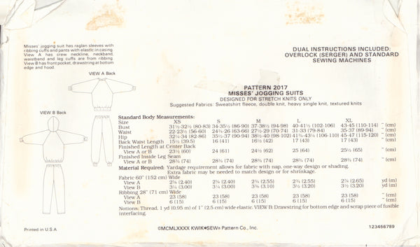 Kwik Sew 2017 Sewing Patterns, Misses' Jogging Suit, XS-S-M-L-XL, Partially Cut, Complete