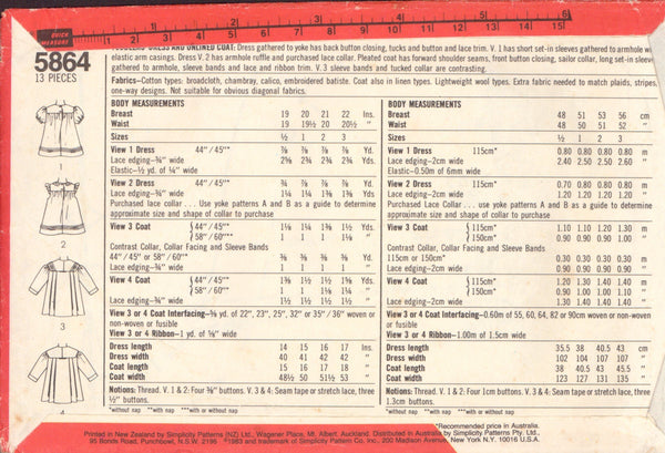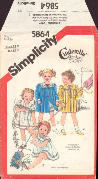 Simplicity 5864 Sewing Pattern, Toddlers' Dress and Coat, Size 1, Partially Cut, Complete