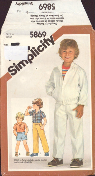 Simplicity 5869 Sewing Pattern, Child's Pants or Shorts, Shirt and Unlined Jacket, Size 4, Neatly Partially Cut, Complete