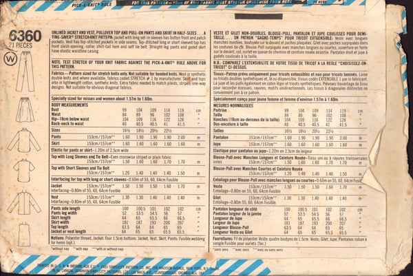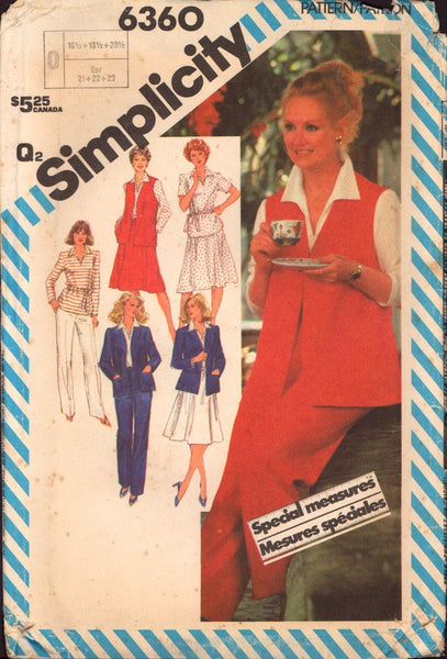 Simplicity 6360 Jacket, Vest, Top, Skirt, Pants, Sewing Pattern, Size 16.5-18.5-20.5, Uncut, Factory Folded