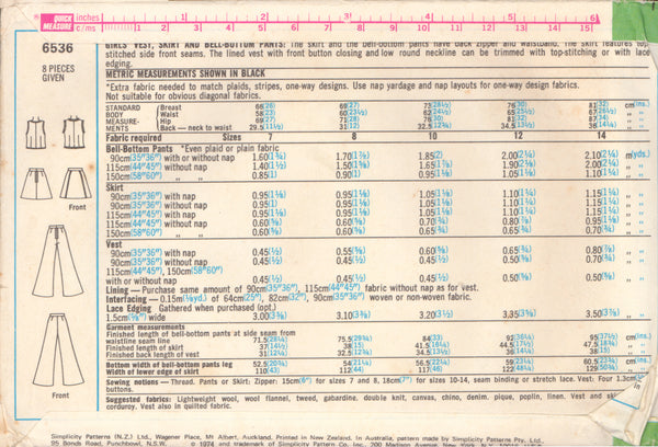Simplicity 6536 Sewing Pattern, Girls' Vest, Skirt and Pants, Size 12, Cut, Complete