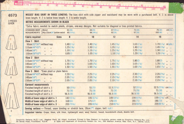 Simplicity 6573 Sewing Pattern, 2-Lengths Skirt, Size 12, Cut, Complete
