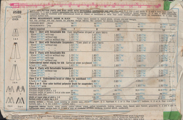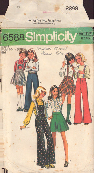 Simplicity 6588 Sewing Pattern, Girls' Pants and Skirt, Size 8, Cut, Complete