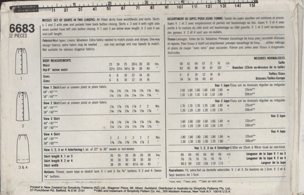 Simplicity 6683, Sewing Pattern, Skirts, Size 10-12-14, Uncut, Factory Folded