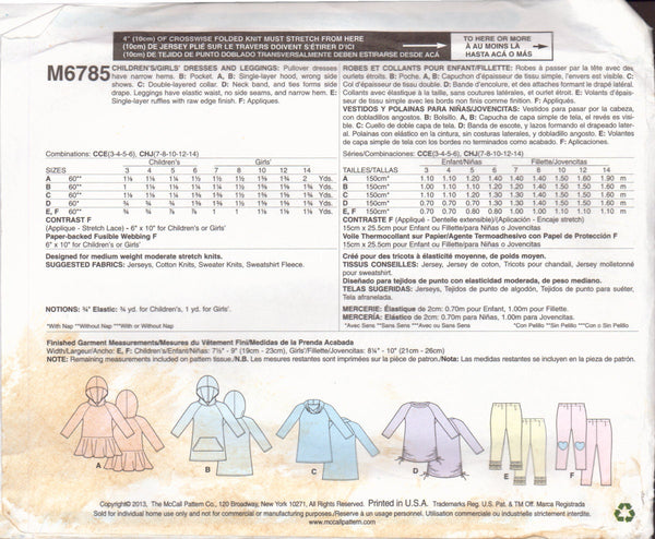 Simplicity 6785 Sewing Pattern, Girls' Dresses and Leggings, Size 7-8-10-12-14, Uncut, Factory Folded