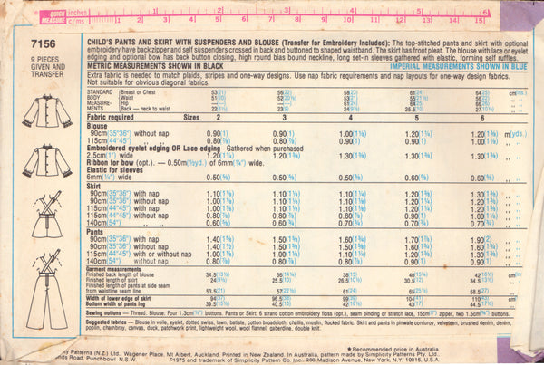 Simplicity 7156 Sewing Pattern, Child's Pants, Skirt and Blouse, Size 3, Cut, Complete