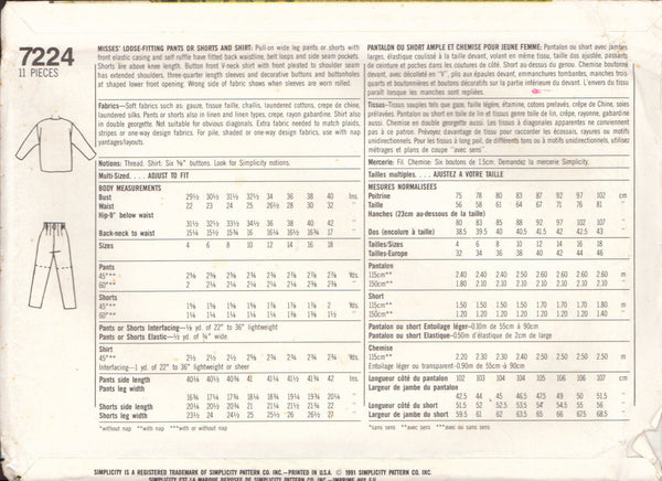 Simplicity 7224 Sewing Pattern, Pants or Shorts and Shirt, Size 8-14, Uncut, Factory Folded