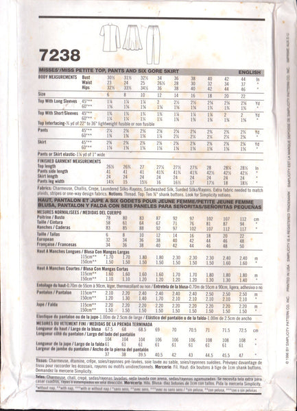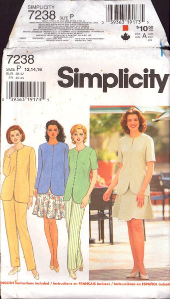 Simplicity 7238 Sewing Pattern Top, Skirt and Pants Size 12-14-16, Uncut, Factory Folded