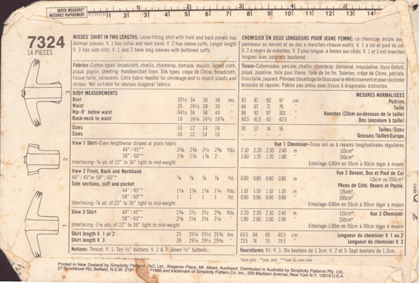 Simplicity 7324 Sewing Pattern, Blouse, Size 10, Cut, Complete