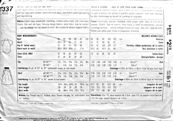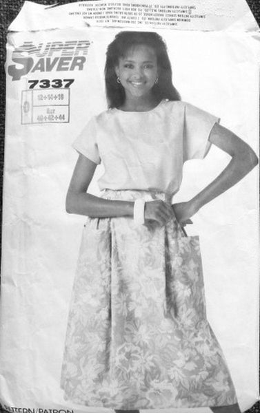Simplicity 7337 Sewing Pattern, Top and Skirt, Size 12-14-16, Uncut, Factory Folded