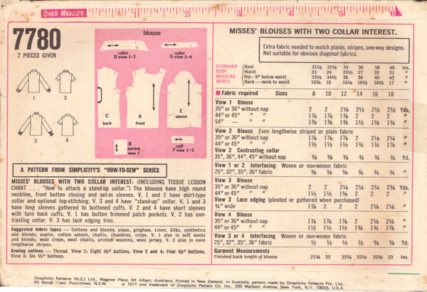Simplicity 7780 Sewing Pattern, Misses' Blouses, Size 12, Cut, Incomplete