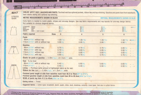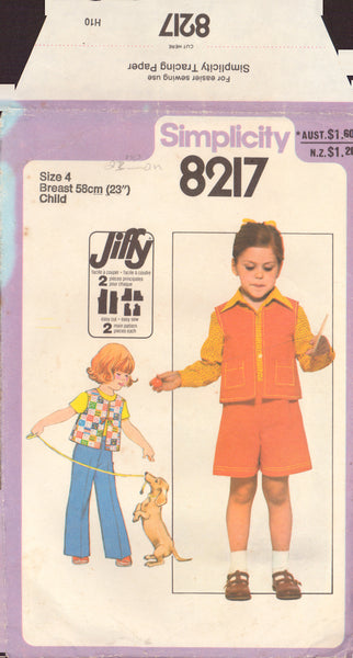 Simplicity 8217 Sewing Pattern, Child's Pants, Shorts and Vest, Size 4, Partially Cut, Complete