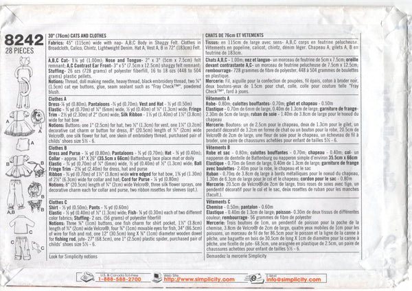 Sunrise Designs 30" (76 cm) cats and a set of clothing for them.