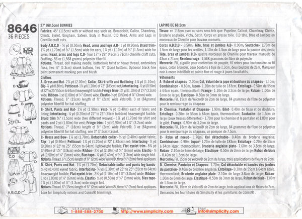 Faith van Zanten 27" (68.5 cm) high soft toy bunnies and clothing.