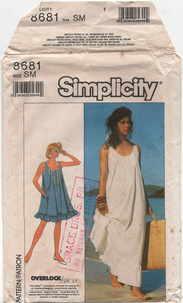 Size 10-12 is cut, checked and complete. Size 14-16 is uncut and factory folded. Envelope is in good condition with shelf wear, light creases and a store stamp on the front.