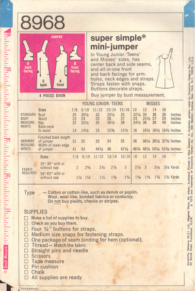 Simplicity 8968 Sewing Pattern, Misses' Jumper, Size 12, Cut, Complete