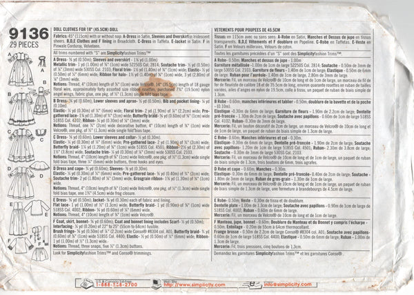 Patterns to create clothing/accessories to fit 18" (45.5 cm) dolls.