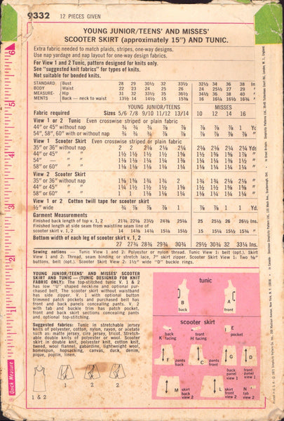 Simplicity 9332 Sewing Pattern Scooter Skirt and Tunic, Size 12-14-16, PARTIALLY CUT, COMPLETE
