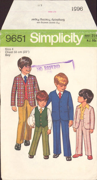 Simplicity 9651 Sewing Pattern, Boys' Jacket, Pants and Reversible Vest, Size 4, Partially Cut, Complete