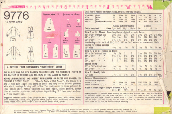 Simplicity 9776 Sewing Pattern, Misses' Blouse, Size 14, Uncut, Factory Folded