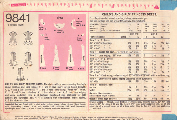 Simplicity 9841 Sewing Pattern, Girls' Princess Dress, Size 10, Cut, Complete