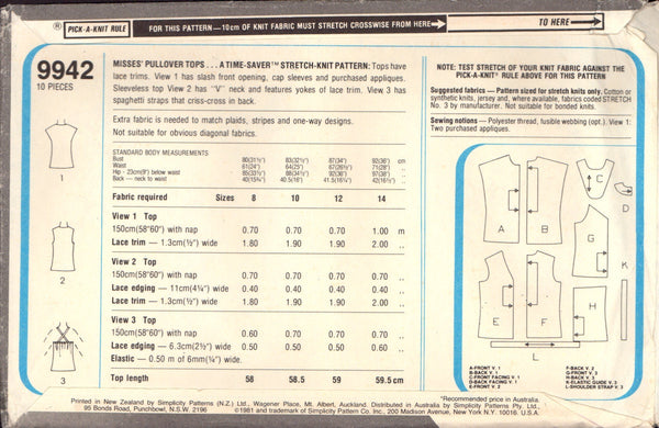Simplicity 9942 Sewing Pattern, Women's Tops, Size 10-12-14, Uncut, Factory Folded