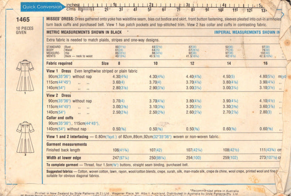 Dress gathered onto yoke has waistline seam, bias cut bodice and skirt, front button fastening, sleeves pleated into cut-in armholes, have turn back cuffs and purchased belt. View 1 has patch pockets and top-stitched trim. View 2 has collar and cuffs in contrasting fabric.
