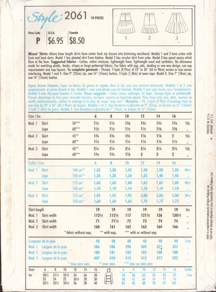 Style 2061 Sewing Pattern, Skirts, Size 6-12, Partially Cut, Complete