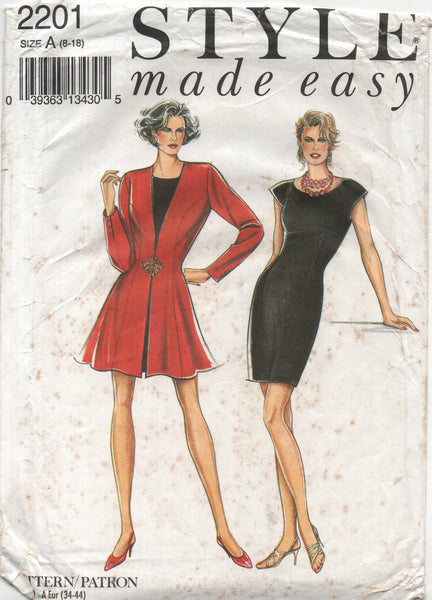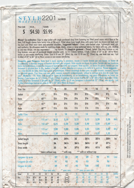 Pattern is partially cut to 10 (dress) and remaning pieces are uncut but not factory folded (jacket). Envelope in fair/poor condition with shelf wear, missing top flap, tattering in the corner edges, some foxing and creases.