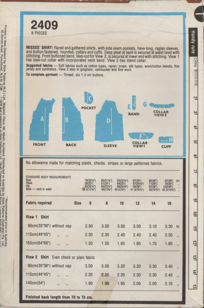 Style 2409 Sewing Pattern, Women's Shirt, Size 12, Cut, Complete