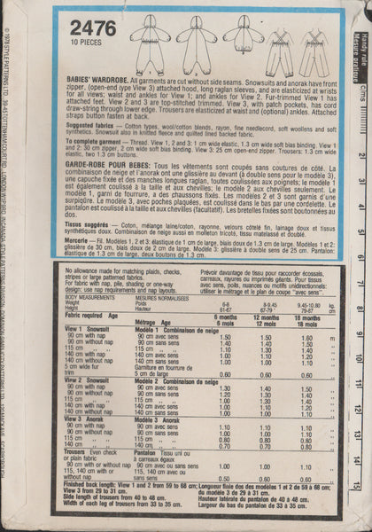 Style 2476 Sewing Pattern, Babies' Wardrobe, Size 6 months, Uncut, Factory Folded