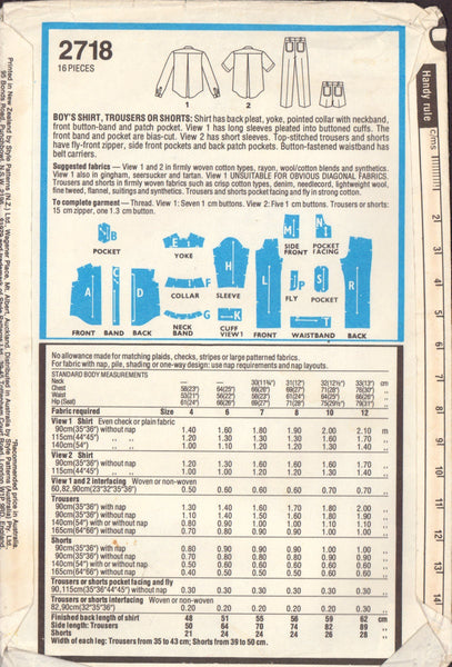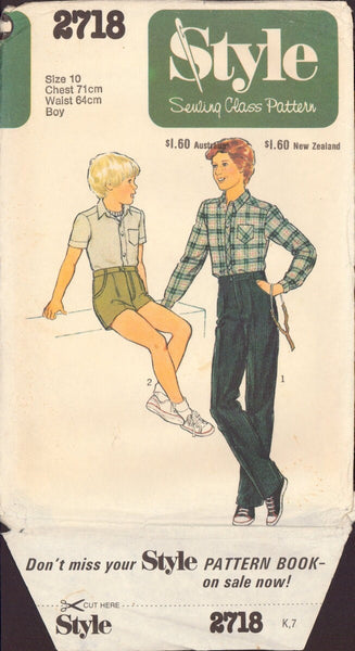 Style 2718 Sewing Pattern, Boys' Shirt, Trousers or Shorts, Size 8, Cut, Complete OR Size 10, Cut, Complete