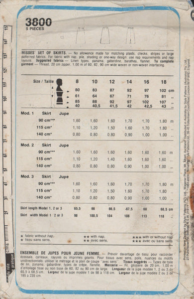 Style 3800 Set of Skirts, Sewing Pattern, Size 12, CUT, COMPLETE