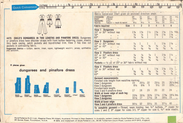 Style 4475 Children's Dungarees and Pinafore Dress, Size 5, Cut, Complete