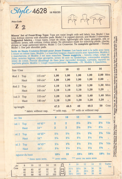 Style 4628 Sewing Pattern, Tops, Size 8-10-12, Neatly Cut, Complete