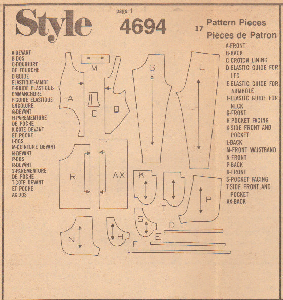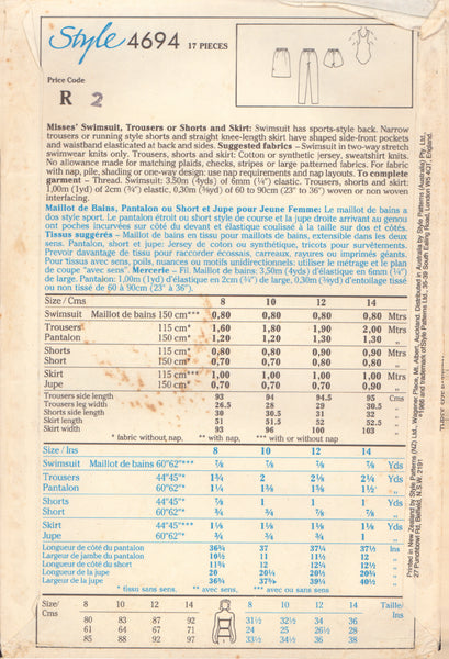 Style 4694 Sewing Pattern, Swimsuit, Trousers/Shorts & Skirt, Size 8-12, Cut, Complete