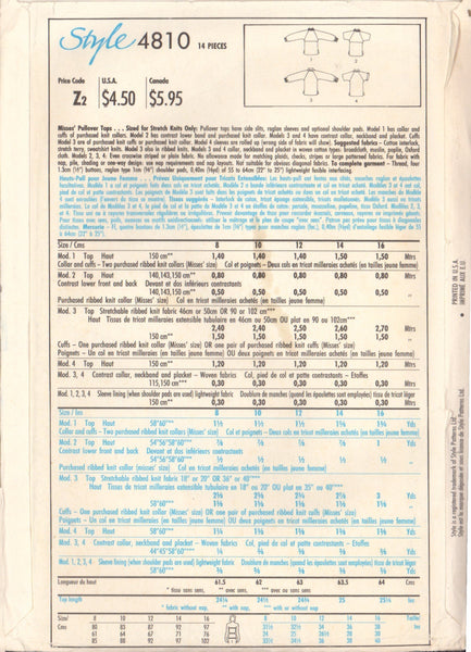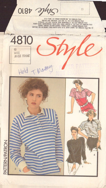 Style 4810 Sewing Pattern, Tops, Size 12, Uncut, Factory Folded