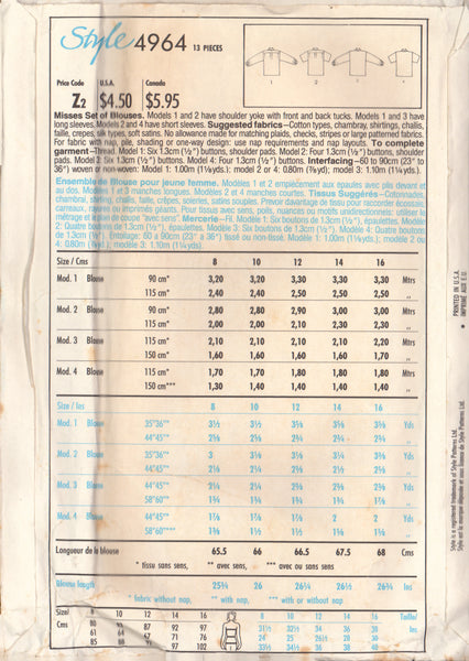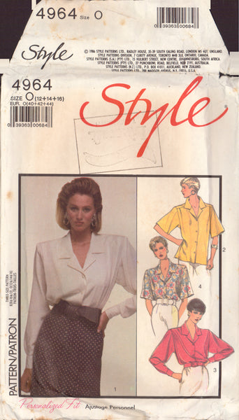 Style 4964 Sewing Pattern, Set of Blouses, Size 12-14-16, Cut, Complete