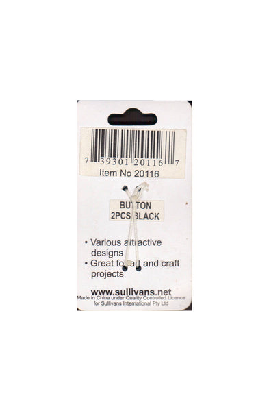 Sullivans 7/8" (21 mm) size Two Hole Buttons in Black, 2 on card (B80)