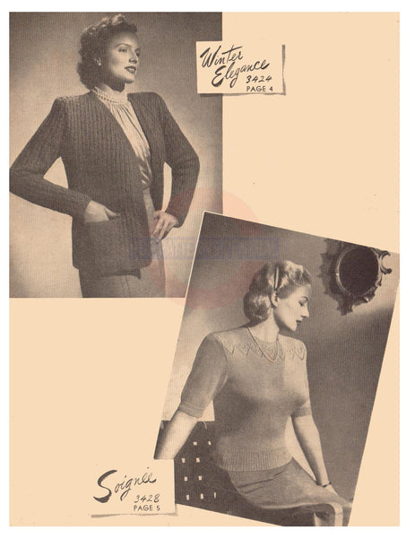 Sun-glo 129 - 40s Knitting Patterns for Women's Sweaters/Jumpers, Vests and Cardigans Instant Download PDF 16 pages