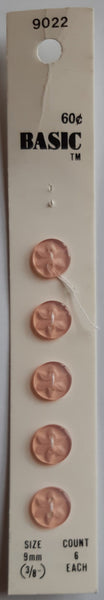 Vintage "Basic" 9 mm (3/8 inch) Carded Baby Pink Daisy Pattern 2-Hole Buttons Five Pieces