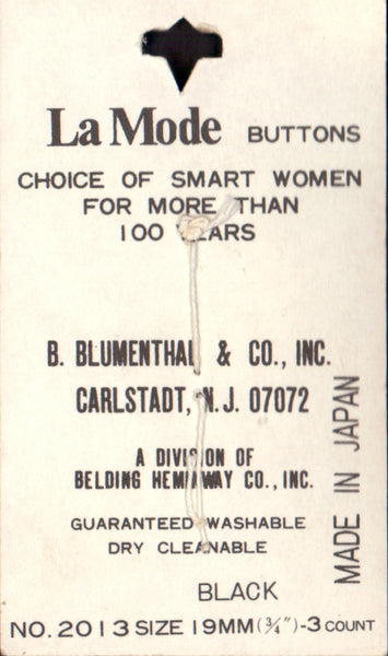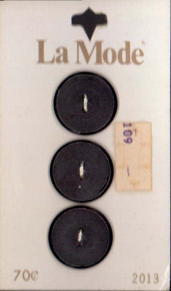 Vintage La Mode 19 mm (3/4 inch) Carded Black 2-Hole Buttons Three Pieces
